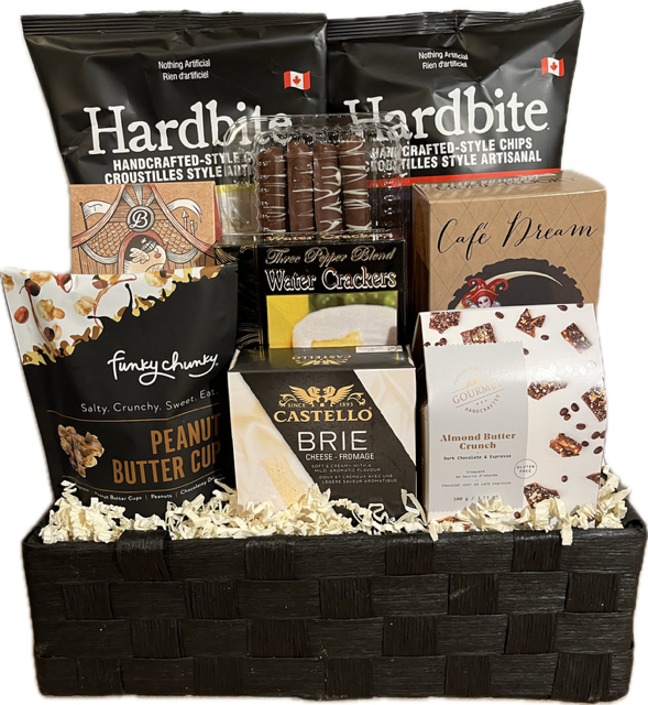 A classic favorite.  This basket looks great and has a nice assortment of local and assorted snacks to enjoy. Perfect for corporate gifting as well as family and friends.